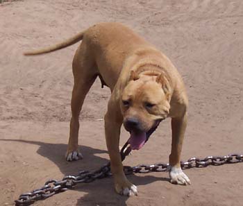 This is an awesome dog! Her Grandsire is krazyside's Chainsaw one of the great dogs off of Garner's Frisco. She throws fire, mouth, and intensity in every pup she has produced!
