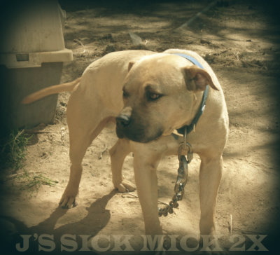 "SICK MICK"IS  A REAL STRAIGHT FORWARD GAME BULLDOG WITH PUNCH.HIS REGISTERED NAME IS SALAZAR'S"STEEL TOE"  HE IS ONE OF THE BEST SONS OFF CH"FATTY" ALIVE TODAY.. (NOT AT PUBLIC STUD!!)