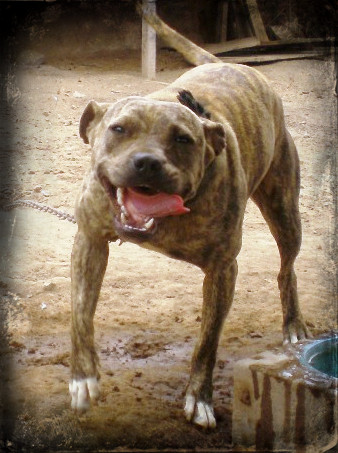 Dark Brindle, a true throw back to Tant's Miss Jocko ROM. Talk about strong genes running through this Animal's Veins. DOB 2010-04-08